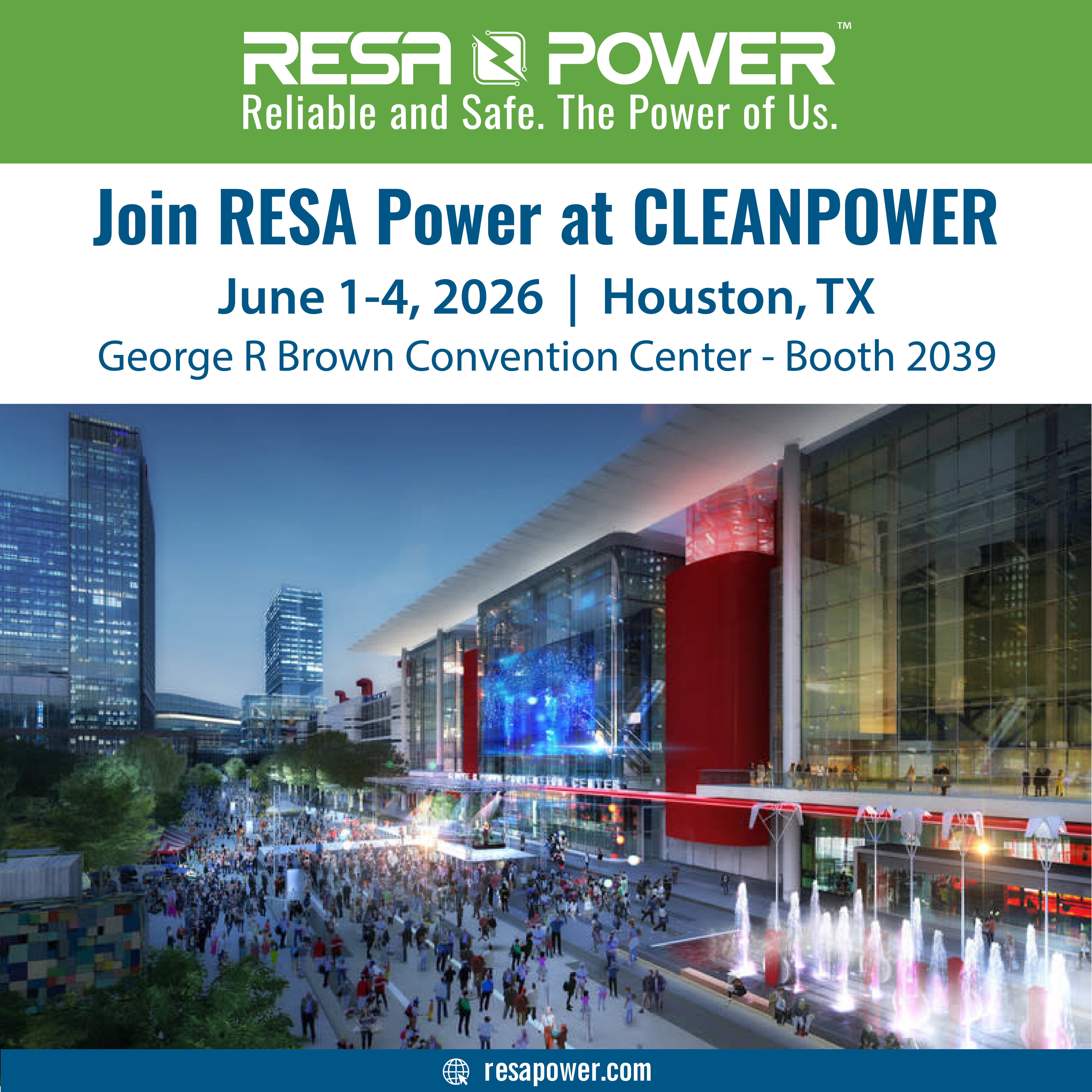 Make sure to mark your calendar and visit our booth #2039, where our team of clean energy experts will be waiting to connect with you. Discover how RESA Power can help you maximize performance, enhance reliability, and optimize your clean energy infrastructure. Whether you’re seeking solutions for wind energy, solar power, energy storage, or any other aspect of clean energy, we have you covered.